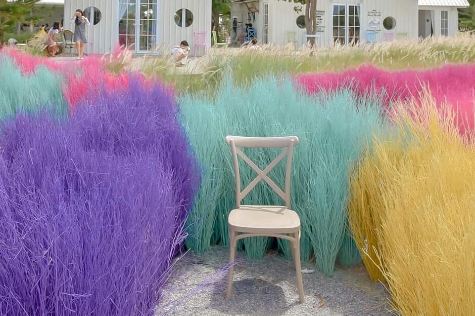 เป็นคาเฟ่ที่กำลังฮิตอยู่ของหัวหิน ทุ่งหญ้าพาสเทลน่ารักดีค่ะ